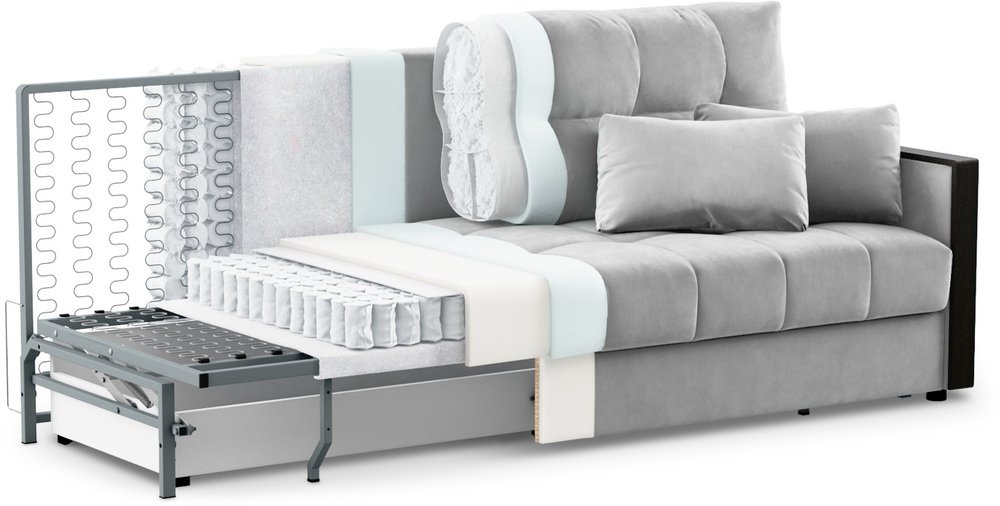 Механизм трансформации «Пантограф» подходит для ежедневного использования. Диван раскладывается и складывается, не повреждая напольное покрытие.