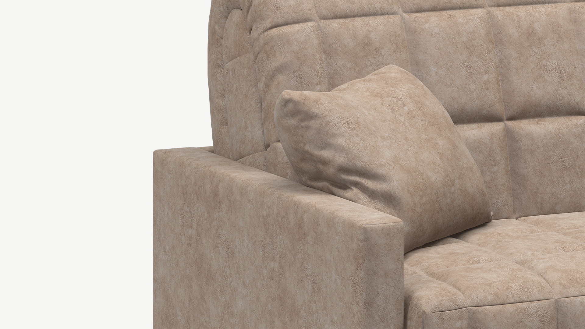 Диван MOON FAMILY 134 украшен уютной стежкой в квадрат. Гладкая фактура подлокотников и стежка — эффектный визуальный контраст, добавляющий Дизайну привлекательности.