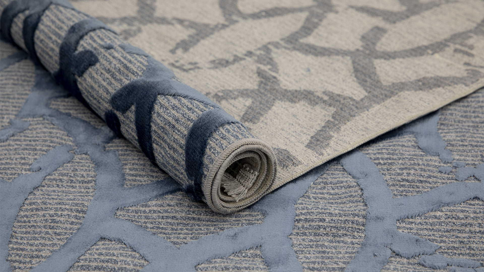 Ворс толщиной в 2 мм создает приятный рельефный узор ковра. Мягкий и блестящий, направленный в одну сторону, он позволяет наблюдать игру цвета при смене ракурса и освещения. Цвет узора колеблется от блестящего светлого до матового темного.